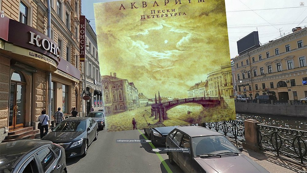 В начале недели по социальным сетям разлетелась галерея британской газеты The Guardian с местами, где были сняты обложки знаменитых музыкальных альбомов. Вместо фотографий городских улиц редакция использовала виды из коллекции Google Street View. «Бумага» попыталась повторить эксперимент и нашла в Петербурге точки, которые изображены на обложках пластинок «Аквариума», «Зоопарка», «ДДТ» «Чижа» и «Секрета».