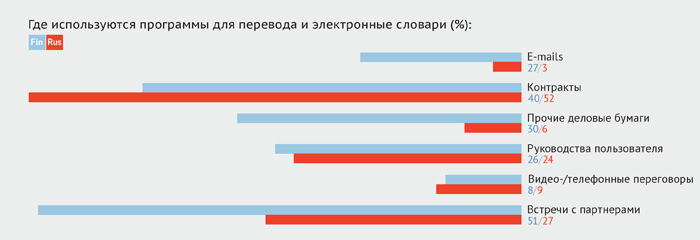 120 тысяч рублей в год — столько финская компания в среднем тратит на услуги синхронного переводчика, согласно исследованию компании Promaco. На те же цели у российских бизнесменов уходит около 100 тысяч. На перевод писем и документации бизнесмен в Финляндии ежегодно тратит примерно 130 тысяч рублей, в России эта цифра заметно ниже — всего около 40 тысяч. В обеих странах услуги переводчиков нужны предпринимателям на деловых встречах, а также при подготовке документов: договоров, деловых писем и официальных бумаг.