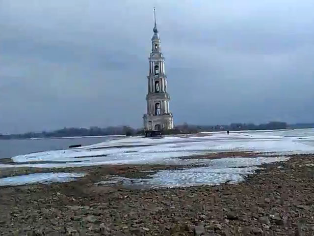 По словам экспертов, колокольня оказалась на сухой земле благодаря малоснежной зиме и сбросу воды из водохранилища. Ожидается, что колокольню вновь затопит водой уже к маю.