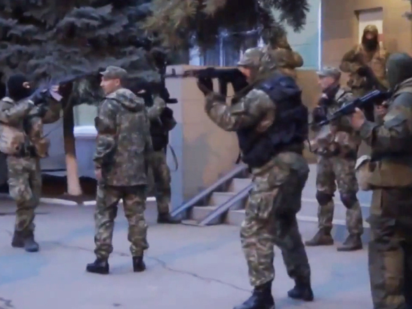 А что касается того, кто именно в ночь на воскресенье все это захватывал, то рассуждений не будет. Просто клип. Там что интересно: милиционеры, с поднятыми руками вышедшие навстречу "силам самообороны" или как их там, убеждают, что они - представители донецкой республики. На это никто не обращает никакого внимания и начинается стрельба. В том числе – направляя стволы и в их сторону.