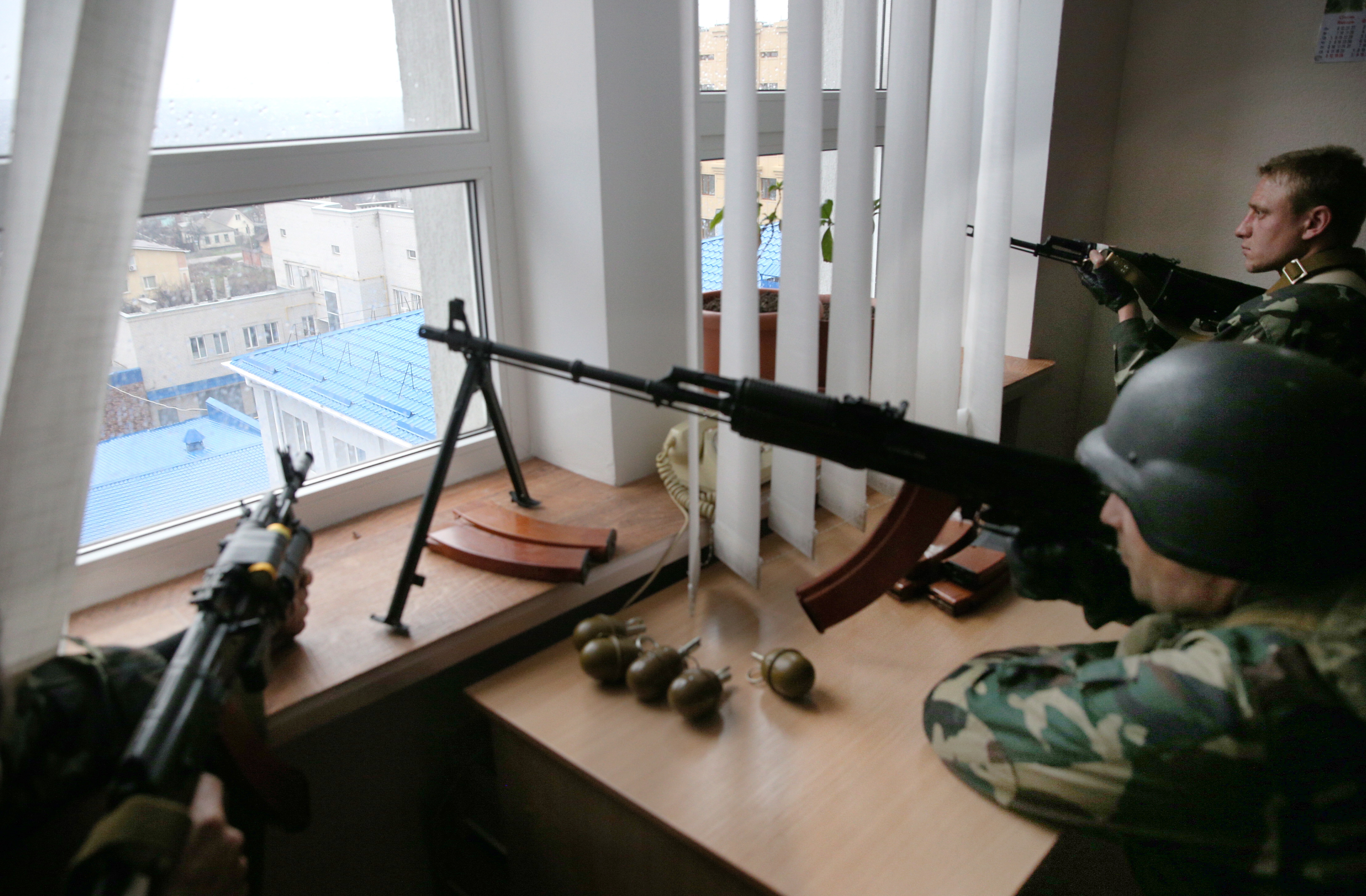 Под контролем пророссийских активистов, создателей так называемой "Донецкой республики", областная государственная администрация Донецка и здание Управления Службы безопасности Украины (СБУ) в Луганске. Тревожная ситуация в Мелитополе, Горловке, Краматорске. В Горловке несколько десятков человек с оружием сегодня захватили здание милиции. На прямой трансляции в интернете было отчетливо видно, что захватчики принялись жестоко избивать милиционеров дубинками и кусками арматуры в ответ на отказ сдать оружие. Журналист Денис Мацука говорит, что именно в Горловке сегодня "эпицентр" драматических событий: