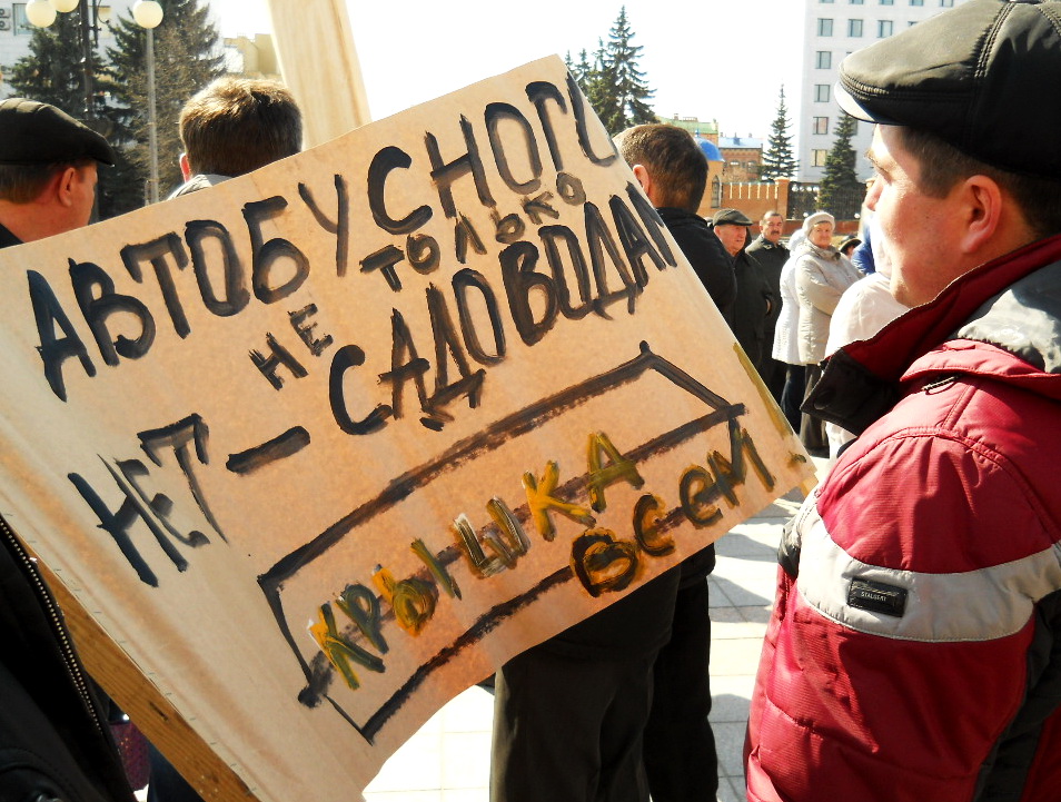 Вообще, создается впечатление, и им участники митинга постоянно делились с трибуны, расположившейся на пьедестале йошкар-олинской уменьшенной копии «Царь-пушки», что г-на Маркелова кто-то усиленно и очень неправильно информирует о требованиях бастующих. Ничем иным работники «Пассажирских перевозок» не могут объяснить регулярное акцентирование Главой Марий Эл на теме запрета частников. Губернатор каждую свою речь по поводу проблем в автобусном парке начинает с реплик о нужности частного бизнеса, напирая на то, что, дескать, «…работники предприятия хотят, чтобы республика запретила частные перевозки».