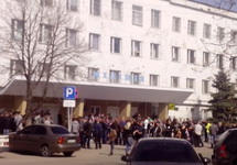 У здания управления собрались около 100 боевиков. Перед ними выступил организатор захвата главка СБУ в Луганске. Он потребовал, чтобы начальник городского управления милиции Александр Селиверстов подал в отставку.