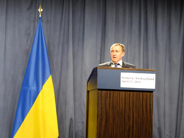 Глава внешнеполитического ведомства Украины заверил, что Киев немедленно обратится к ОБСЕ, миссия которой уже развернута, чтобы попросить начать переговоры там, где административные здания оказались захвачены. Андрей Дещица назвал достигнутые в Женеве договоренности "тестом для России" и предположил, что "следующие несколько дней будут чрезвычайно важными, так как потребуют от всех сторон искренних усилий по выполнению формул, столь тщательно вырабатываемых в течение дня".