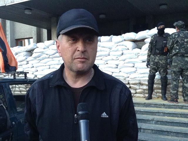 Пономарев заявил: "С сегодняшнего дня в нашем городе запрещена деятельность таких политических партий, как "Свобода", УДАР, "Батькивщина"... Если запрет будет нарушен, провинившихся передадут в руки казакам".