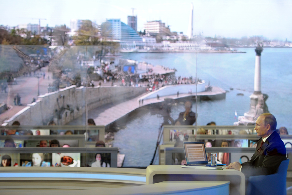 Прямой эфир на фоне набережной Севастополя. Москва, 17 апреля 2014 г. /фото: Алексей Дружинин/ИТАР-ТАСС