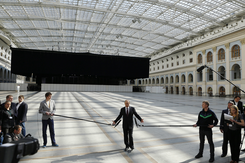 Путин общается с журналистами после «Прямой линии». Гостиный двор, Москва, 17 апреля 2014 г. /фото: Павел Головкин/AP/East News