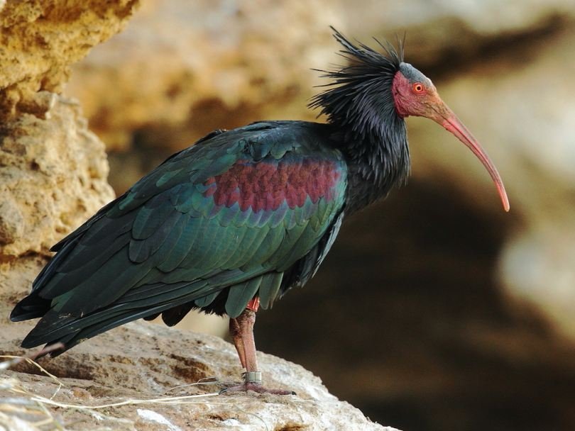 Молодой лесной ибис Второй представитель семейства ибисовых в печальном списке. Относится к роду лысых ибисов, на голове, за исключением затылка у него нет перьев. Когда-то он был широко распространен в странах Ближнего Востока, Северной Африки, Южной и Центральной Европы. В Европе ареал лесного ибиса доходил до Германии, Швейцарии и Австрии.