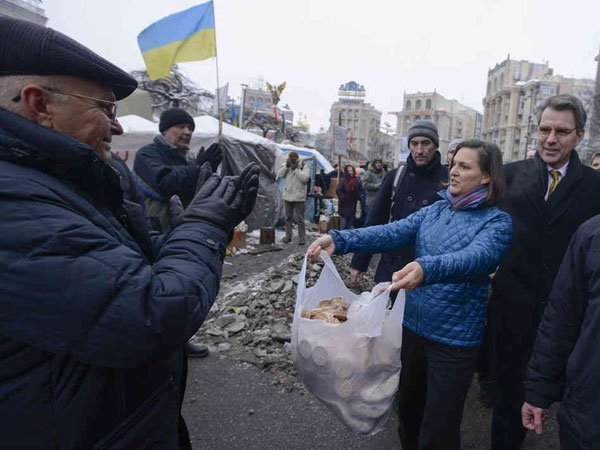 Помощник госсекретаря США по делам Европы и Евразии Виктория Нуланд заявила в интервью CNN, что Вашингтон потратил с 1991 года 5 млрд долларов на установление на Украине сильного демократического государства. Нуланд подчеркнула, что средства тратились с тех пор, как Украина стала независимым государством после распада Советского Союза. Помощник госсекретаря США особо подчеркнула, что средства не перечислялись на поддержку Майдана. По ее словам, это было стихийное движение. Ранее сообщалось, что Агентство по международному развитию и Государственный департамент США выделят Украине 11,4 млн долларов на организацию и проведение президентских выборов. Финансовая помощь будет выделена для продвижения свободных, честных и мирных выборов, назначенных на Украине на 25 мая. Речь идет о поддержке местных и международных наблюдателей, создании прозрачной и эффективной выборной комиссии, организации кампании по образованию избирателей.