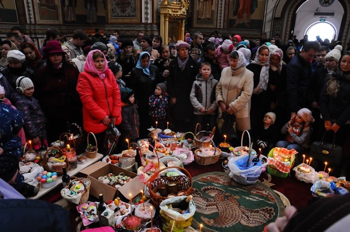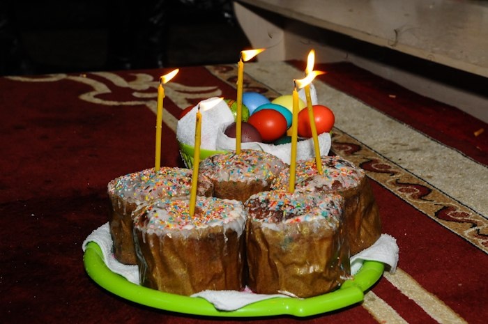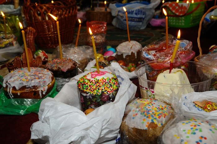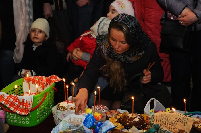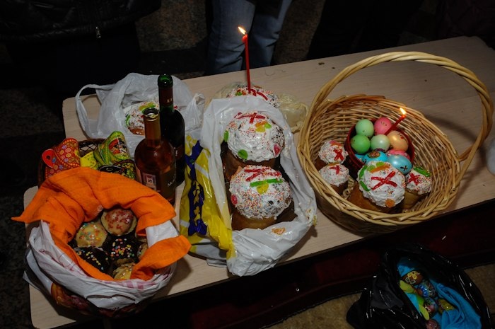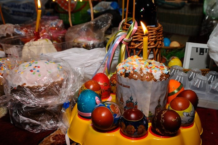 Здесь же в ночь с субботы на воскресенье освящали куличи и пасхальные яйца.