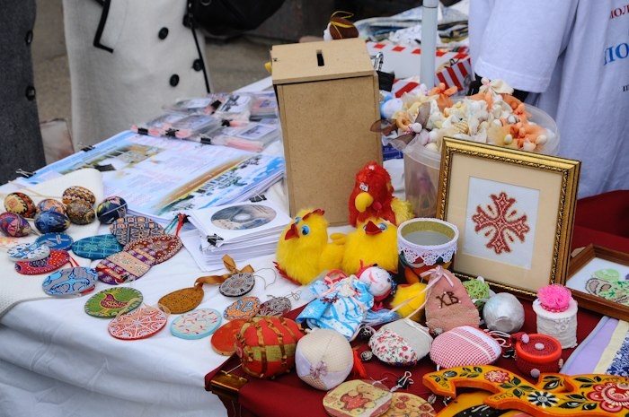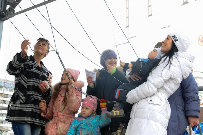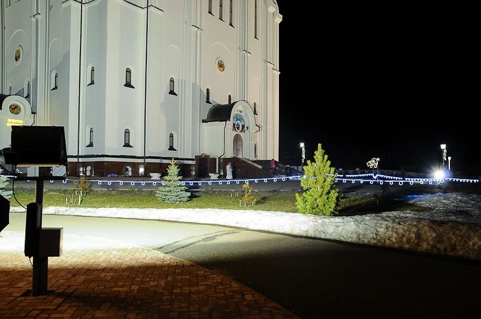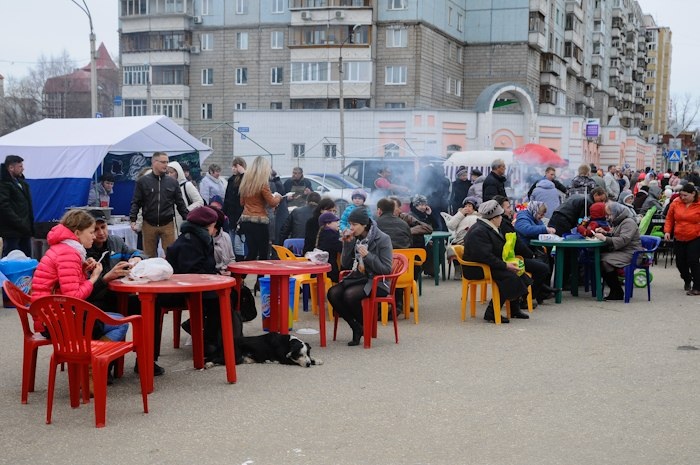 Днем действо переместилось на улицу. Гулянья по поводу главного православного праздника прошли на площадке возле собора.