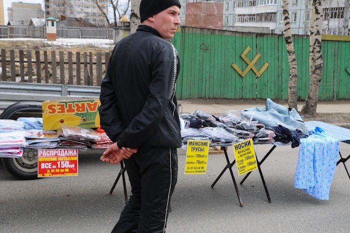 Как и без уличной торговли, иногда весьма забавной. Мужские трусы и носки предлагали гуляющим возле собора.