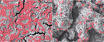 А вот золотистый стафилококк Staphylococcus aureus в обоих случаях к скорлупе почти не прилипает. Возможно, дело в том, что у этой грамм-положительной бактерии нет выростов-пилей, с помощью которых можно прикрепиться к поверхности, а у грамм-отрицательных кишечной и синегнойной палочек есть.