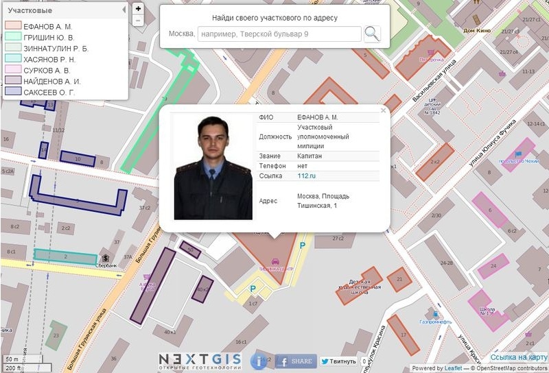 поиск ближайшего участкового инспектора с помощью открытых данных