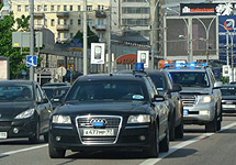 "По нашей информации, это кортеж господина Ресина. Это бывший заместитель Лужкова по строительству. После того как в Москве сменилась власть, за ним оставили этот автомобиль и он продолжает ездить на нем", - сообщил координатор "Общества синих ведерок" Петр Шкуматов.