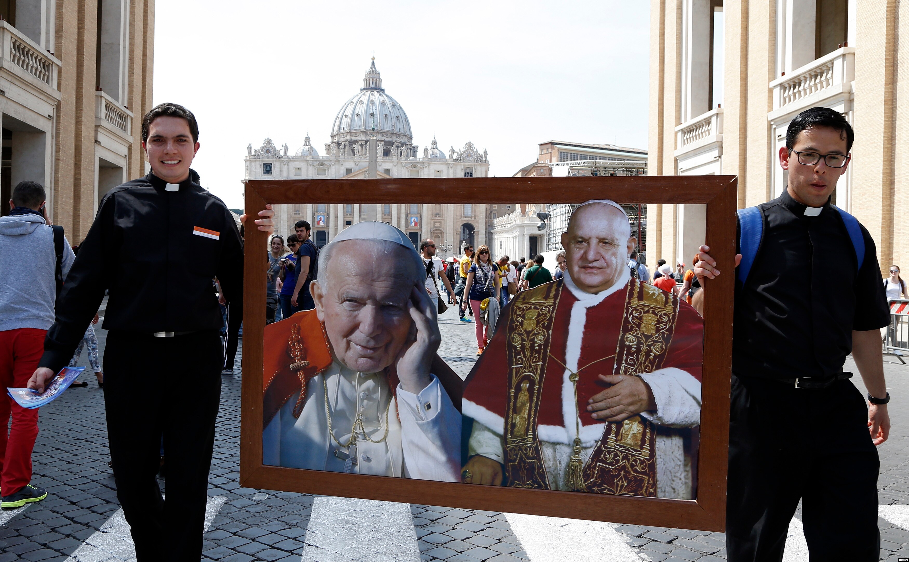 27 апреля в Ватикане прошло выдающееся для новейшей истории Римско-католической церкви событие: причисление к лику святых сразу двух почивших понтификов, Иоанна Павла II и Иоанна XXIII. Глава "Паломнического агентства" Ватикана кардинал Либерио Андреатта заявил накануне церемонии, что в воскресенье на площади Святого Петра будут одновременно присутствовать сразу четыре папы римских: двое здравствующих (действующий папа Франциск и "заслуженный папа в отставке" Бенедикт XVI) и – незримо – двое новых святых. Число паломников составляет не менее 3 миллионов человек.Как отмечает римский журналист-ватиканолог, знаток традиций, истории и политики Ватикана Алексей Букалов, двойная канонизация, может быть, самое важное пока в XXI веке событие в жизни Римско-католической церкви: