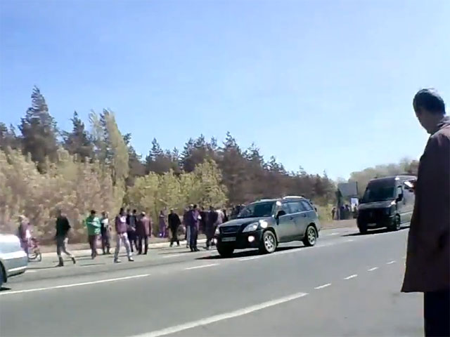 Внести ясность в произошедшее может помочь видеозапись, опубликованная на YouTube. На ней видно, как люди, одетые в фиолетовую форму (возможно, это из-за неисправности камеры. - Прим. NEWSru.com), стоят на дороге, а к ним подтягиваются молодые люди в спортивных костюмах. При этом они выкрикивают нецензурные реплики и грозят сотрудникам "Темура", у которых на плечах висят автоматы, "вооружиться". Однако какого-либо оружия у них, судя по видеозаписи, нет.