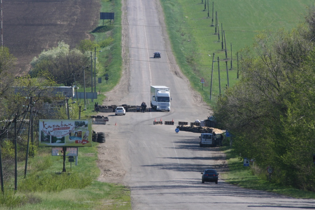 На мое замечание о том, что если мнение подтверждать вооруженным захватом заложников, то это уже несколько иное, вяло отвечает "а что, на Майдане что ли не стреляли..." Сражаться за территориальную целостность Украины ему, по-моему, не очень хочется. Это подразделение из Кривого Рога — наиболее сочувствующего Донецкой республике в области. Но есть и другие. Спортивные, хорошо вооруженные и экипированные люди в милицейской форме с закрытыми масками лицами. Кто такие, не говорят, работают молча, в разговоры не вступают, чувствуется, что дело свое знают. Машину досматривают по полной. У этих с мотивировкой, кажется, все в порядке.