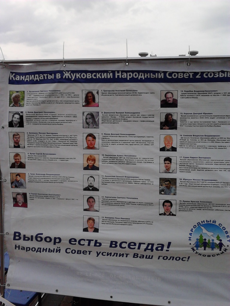 «Регулярные выборы нужны для того, чтобы мы могли понять, поддерживают ли нас люди, - рассказывает член ЖНС первого созыва и кандидат во второй созыв Михаил Юрицын, молодой мужчина с велосипедом и в спортивном костюме.- Во-вторых, это можно предъявить власти. Некоторые жуковские депутаты говорят: меня поддерживают жители. Мы отвечаем – посмотрите, за нас тоже люди голосовали».