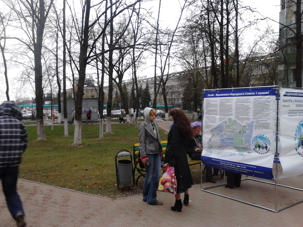 В конце рабочего дня волонтеры устанавливают в городе три агитационных куба, аналогичных знаменитым агитационным кубам Навального. Здесь местные жители, которые не доверяют интернету или просто ничего не знают про Жуковский народный совет, могут получить информацию о кандидатах и отдать свой голос. В день, когда корреспондент The New Times посетил город, один куб стоял у памятника Николаю Жуковскому и еще два – у Центрального аэрогидродинамического института и Летно-исследовательского института им. Громова. Каждый день активисты меняют точки.