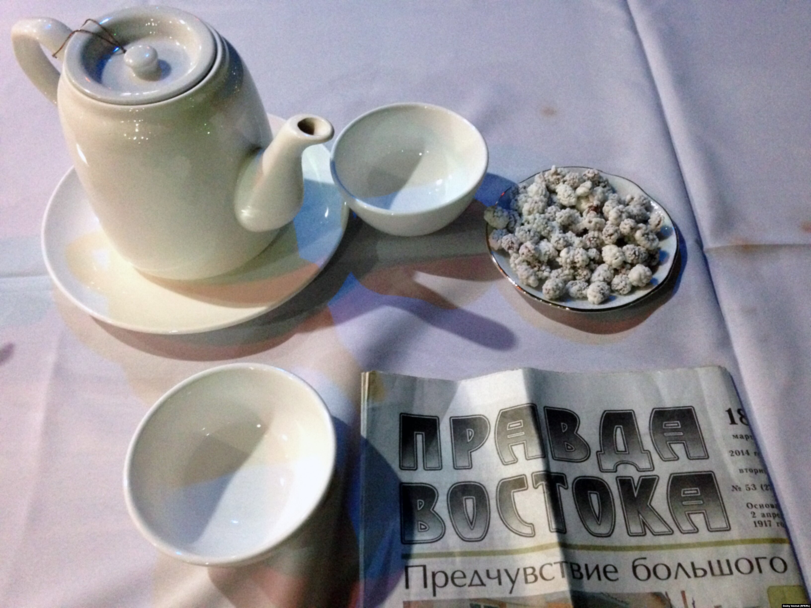 Зато советский дух сохранился в прессе. Покупаю невероятную "Правду Востока": копия московских газет 1982 года со всеми трудовыми подвигами и повышением удойности, но без коммунизма и идеологии. Передовица сообщает, что весь народ готовится встретить Новруз и ради праздника следует провести субботник. Никакой политики, ни слова об Украине, и телевидение тоже молчит, но все волнуются из-за Крыма: правда, по меркантильным соображениям. Миллионы узбеков работают в России, еще недавно средний гастарбайтер, экономя на всем, присылал родным 700 долларов в месяц. Теперь рубль падает, и 700 плавно превращаются в 500, а что будет дальше?