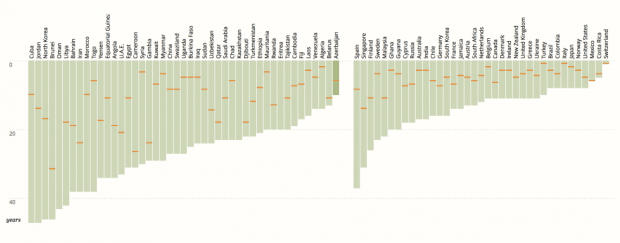How educated are world leaders? — это последовательность диаграмм, визуализирующих уровень образования мировых лидеров, начиная с 1950 года и до наших дней.