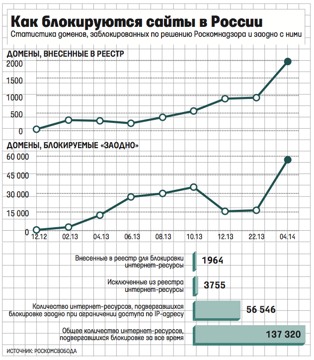 (Из публикации “Ведомостей” со статистикой от “РосКомСвободы”)