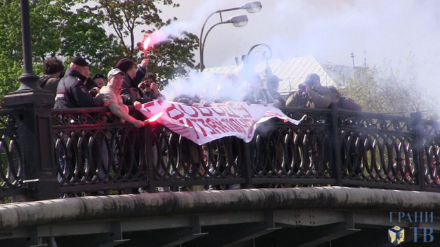 Ранее во вторник 12 гражданских активистов вывесили на пешеходном Лужковом мосту рядом с Болотной площадью баннеры "Россия не тюрьма" и "Свободу политзаключенным!", а также зажгли файеры. Все участники акции, а также снимавший ее журналист Андрей Зубец, были задержаны и доставлены в ОП "Якиманка". На них оформили протоколы по статьям 19.3 и 20.2. Вечером Замоскворецкий райсуд столицы приговорил двоих участников акции - Максима Чеканова и Ильдара Дадина - к 5 и 15 суткам ареста соответственно.