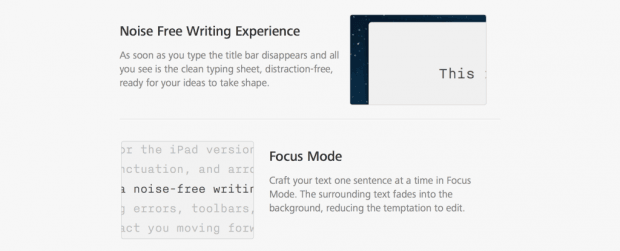 iAWriter — это минимализм и простота сервиса, в котором убрано все лишнее, чтобы ничто не отвлекало вас от процесса написания текста. Даже курсор исчезает после того, как вы начинаете писать, а то, что вы уже написали, становится фоном, что позволяет сконцентрировать ваше внимание непосредственно на том участке текста, над которым вы работаете сейчас.