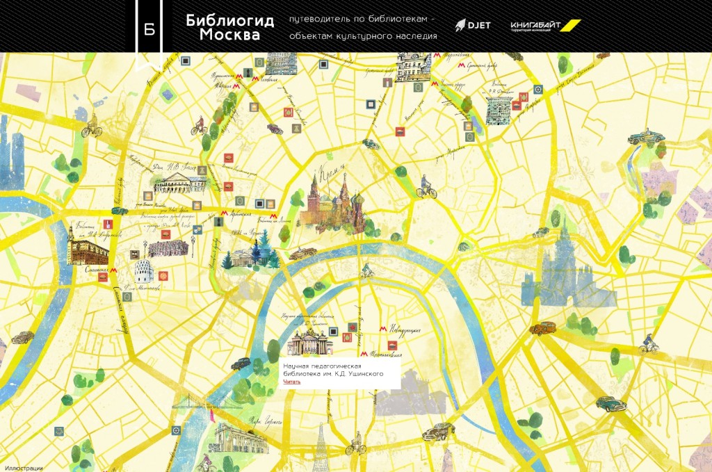 «Библиогид» Москвы заработал в Ночь Библиотек 26 апреля. Много месяцев над проектом трудились фотографы, журналисты, IT-специалисты, дизайнеры — в создании сервиса Московскому городскому библиотечному центру помогали сотрудники агентства DJET и проекта «Книгабайт».