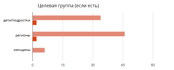 • На нижнем графике проекты разделены по аудиториям, на которые они направлены: