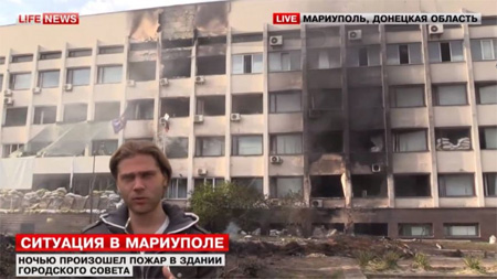 Сгоревшее здание горсовета Мариуполя. Кадр LifeNews
