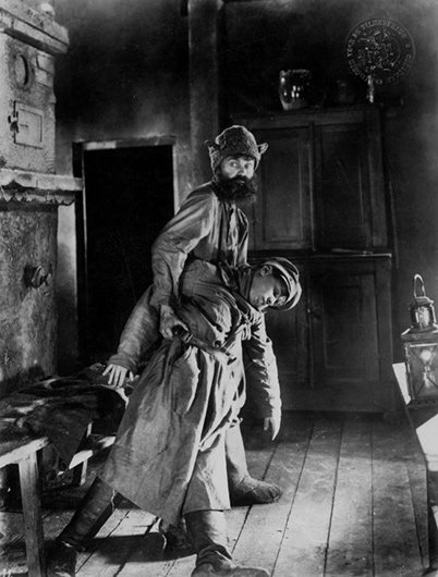 Кадр из фильма «Конец Санкт-Петербурга» В 1927 году вышел «Конец Санкт-Петербурга» Всеволода Пудовкина. Войне в этой картине посвящены едва ли не самые яркие эпизоды. Неожиданно на экране появляются безголовые люди — промышленники и царские министры, которые делят военные заказы. Одновременно с этим на улицы Петербурга высыпают толпы патриотов с триколорами и плакатами. Поданные в ироничной манере, они плачут от счастья, поют гимны, отказываются от товаров немецкого производства и произносят бесчисленные речи, требуя защитить мирное население Сербии. Ощущая сильнейшее единение общества, прохожие восторженно целуются с полицейскими. Всеобщая ажитация доходит до такой высокой точки, что рыдать от умиления начинает сам памятник Александру III, царю, который дружил только с армией и флотом.