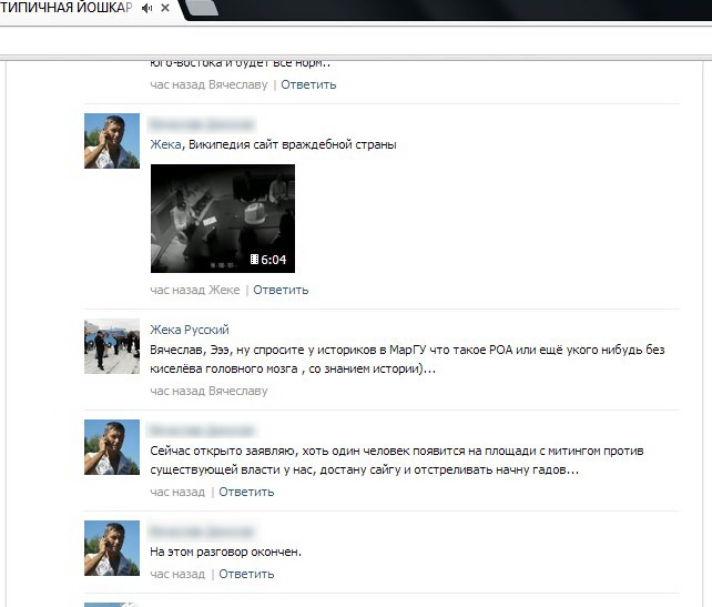Сам он написал о том, что ему угрожают в своем блоге еще 20 апреля. Накануне, в субботу 19 апреля, Евгений с другим активистом, Кириллом Писным, прошелся по центральным улицам Йошкар-Олы с украинским флагом, раздавая прохожим листовки, призывающие к миру.