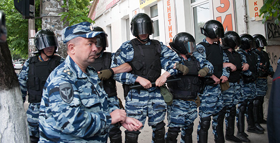 Соседний милиционер, охраняющий заграждение, оказывается крымским татарином.