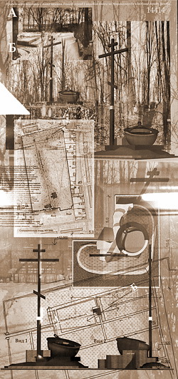 Проект №1 представляет собой каменный крест, заключенный в металлический каркас часовни. Установить ее предлагается там, где сейчас лежит купол. Одному строгому критику, расписавшему целую страницу трудночитаемым почерком, проект №1 показался наиболее приемлемым из представленных вариантов.