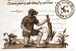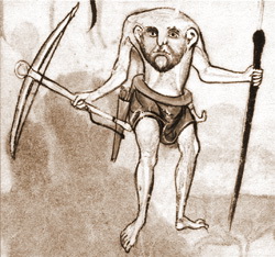 Представления о дальних странах у средневековых людей были причудливые: «Так, выяснялось, что, прибыв на Восток, Александр обнаружил там диких людей. Рост их составлял две сажени, а головы (рука Арсения на голове волка) были косматы. Через шесть дней в глубине пустыни Александрово войско встретило удивительных людей, имевших каждый по шесть рук и по шесть ног».
