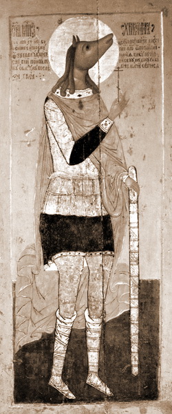 Евгений Водолазкин вызвался посетить этот храм и посмотреть на икону. И это лишний раз подтверждало и без того очевидное: у нас в Пскове есть свои монстры (в более поздние времена святому Христофору пытались придать более божеский - человеческий - вид, зарисовывая пёсью голову и заменяя её чем-то менее угрожающим, допустим, головой Дмитрия Солунского5 ).