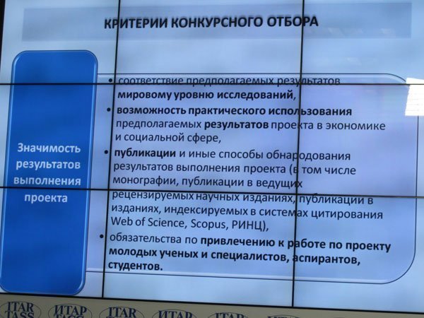 Сообщается, что наибольшее число поддержанных проектов будет реализовано в Центральном, Сибирском и Северо-Западном федеральных округах. Большинство победителей представляют отрасли биологии, медицины, химии и физики. Судя по числу поданных и отобранных заявок, конкурс составил 12 проектов на один грант.