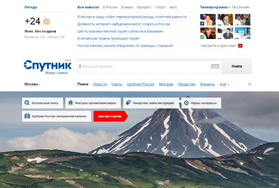 Он располагается по адресу sputnik.ru. Среди разделов «Спутника» — «Удобная Россия», «Мой дом», «Лекарства». «Удобная Россия» выводит на страницу, где собраны популярные поисковые запросы, такие как «Восстановление водительских прав», «Материнский капитал» и «Регистрация брака».