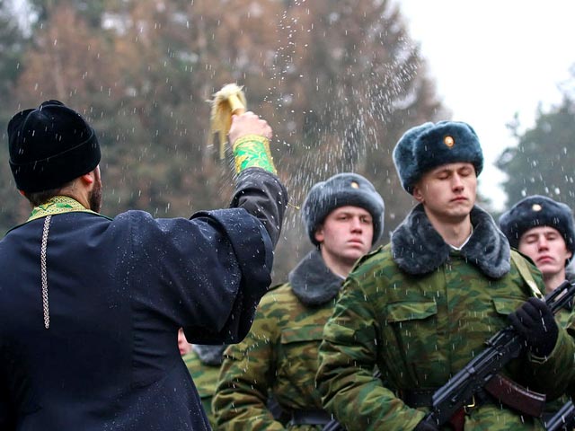 В синодальном отделе считают, что "периодичность участия желающих военнослужащих в Божественной литургии должна быть не реже одного раза в месяц в условиях, когда количество военнослужащих превышает вместимость храмового пространства".