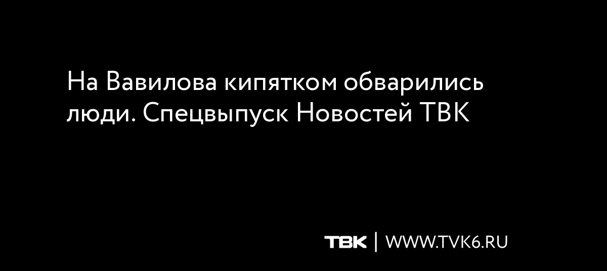 Это специальный выпуск Новостей ТВК. На улице Вавилова, возле дома 1 произошла коммунальная авария. Прорвало трубу с горячей водой. Её температура 70 градусов! По оперативным данным, от фонтана воды пострадали 12 человек, среди которых 5 подростков. Пострадавших направили в краевую больницу. 2 из детей находится в реанимации.