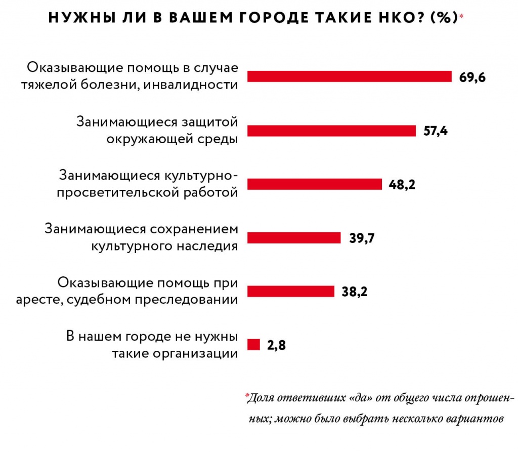 В то же время все общественники сходятся в том, что война государства с «агентами» нанесла НКО огромный репутационный ущерб. «Граждане, более подверженные госпропаганде, утвердились во мнении, что «кто-то кое-где у нас порой», — сетует Павел Чиков. «Наши граждане об общественных организациях вообще мало знают, а если ты о чем-то мало знаешь, а на тебя идет мощная пропагандистская волна, что это плохое, иностранное, — то очень легко сформировать такую негативную установку», — добавляет председатель правления Центра политических технологий (ЦПТ) Борис Макаренко.