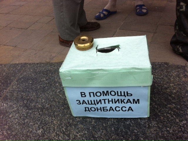 Пока я делала фотографии и наблюдала за происходящим, конвой перестал мной интересоваться. Я в одиночестве возвратилась в лагерь у захваченного СБУ, чтобы сделать еще несколько снимков. Правда, меня отогнали, как только охранники лагеря заподозрили, что в кадр попали синие пластмассовые кабинки биотуалетов. Видимо, они опасаются, что станет известно о невидимой руке, позаботившейся об их комфорте. Среди противников "ЛНР" ни у кого нет сомнения в том, что этот "протест" был кем-то организован. Новенький автомат все-таки не купишь на средства, брошенные в кассу "защитников Донбасса", стоящую у одного из захваченных зданий. Да и вряд ли местные что-либо в эту кассу бросают. Если киевляне регулярно ходили на Майдан, пускали иногородних участников протеста к себе переночевать, то луганчане предпочитают обходить сепаратистский лагерь стороной, а по вечерам – сидеть по домам: комендантский час, объявленная накануне моего приезда мобилизация, вооруженное противостояние всего в ста километрах от города. Почти все, с кем мне удалось поговорить в Луганске, больше всего хотят, чтобы у них не было ничего такого, что сейчас происходит в Славянске или Краматорске, чтобы сюда не пришла настоящая война.