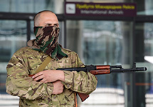 С 7 часов утра понедельника аэропорт временно приостановил обслуживание рейсов. Около 3 часов ночи на территорию аэропорта приехали несколько десятков вооруженных представителей "Донецкой народной республики". Они потребовали вывода украинских военных, охраняющих внутренний периметр аэропорта. Выстрелов и силового противостояния не было.