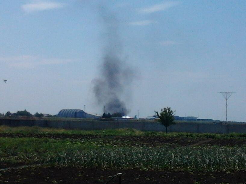 По словам корреспондента агентства, над взлетно-посадочной полосой поднимается столб дыма. Со стороны аэропорта раздается стрельба, в том числе из крупнокалиберного оружия. В небе замечены два истребителя и три вертолета.