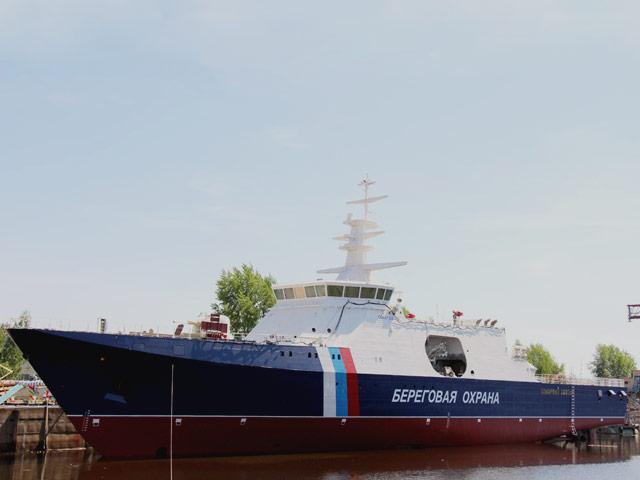 Впервые за 20 лет спущен на воду пограничный корабль для использования в Арктике, где до конца года появятся погранвойска РФ