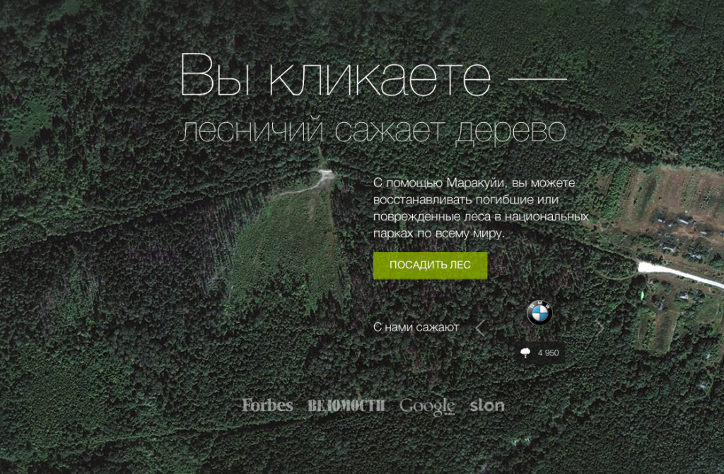 Главная страница сайта проекта Маракуйя. От момента начала работы до посадки деревьев на конкретном участке вам надо сделать 8-10 кликов мышкой. Фрагмент сайта Маракуйя.