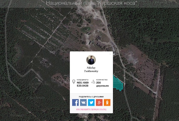Фрагмент сайта проекта maraquia. Каждый участок имеет точные координаты, по ним легко найти свой лес, как на карте, так и поехав непосредственно к месту.