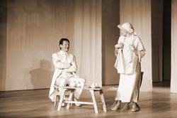 «Я всегда чувствую себя накануне катастрофы, - с трудом сдерживая улыбку, ответил Александр Феклистов. - Особенно перед премьерой. Спектакль начинается с того, что у нашей героини погибает брат. После этого наступает траур в доме… Тут мне подсказывают, что погибает отец... Хорошо, и отец тоже. – Участники пресс-конференции в этот момент принялись дружно трястись от смеха. - Начинается всё со смертей, с траура… Я отвлекусь немножко. – Александр Феклистов сделался совсем серьёзным. - Я недавно прочитал замечательную статью. Учёные не могут практически доказать, что человек как биологическая единица – это тот же человек, что был двадцать лет назад. То есть тот спектакль, который вышел в 2003 году, - совершенно другой спектакль. Поэтому много я уже не помню». - «У отца за это время мог родиться брат». - «Ну, да».
